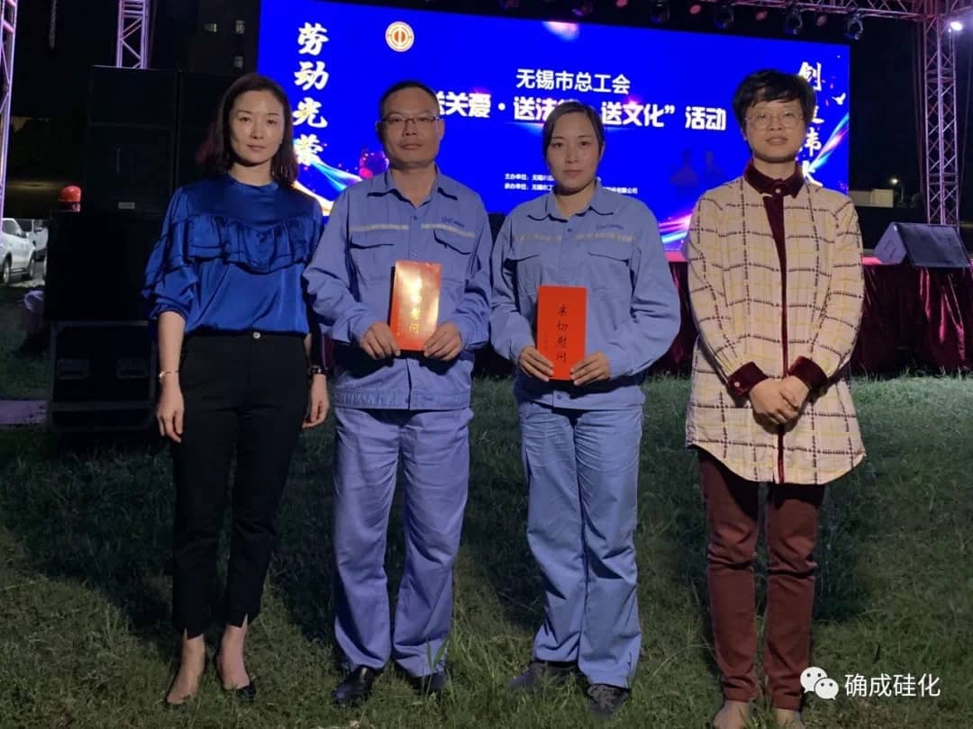 9月27日晚,由無錫市總工會、錫山區(qū)總工會、東港鎮(zhèn)總工會聯(lián)合主辦,無錫市工人文化宮、確成硅化學(xué)股份有限公司承辦的“送關(guān)愛·送法律·送文化”主題文藝晚會在確成草坪廣場成功舉辦。